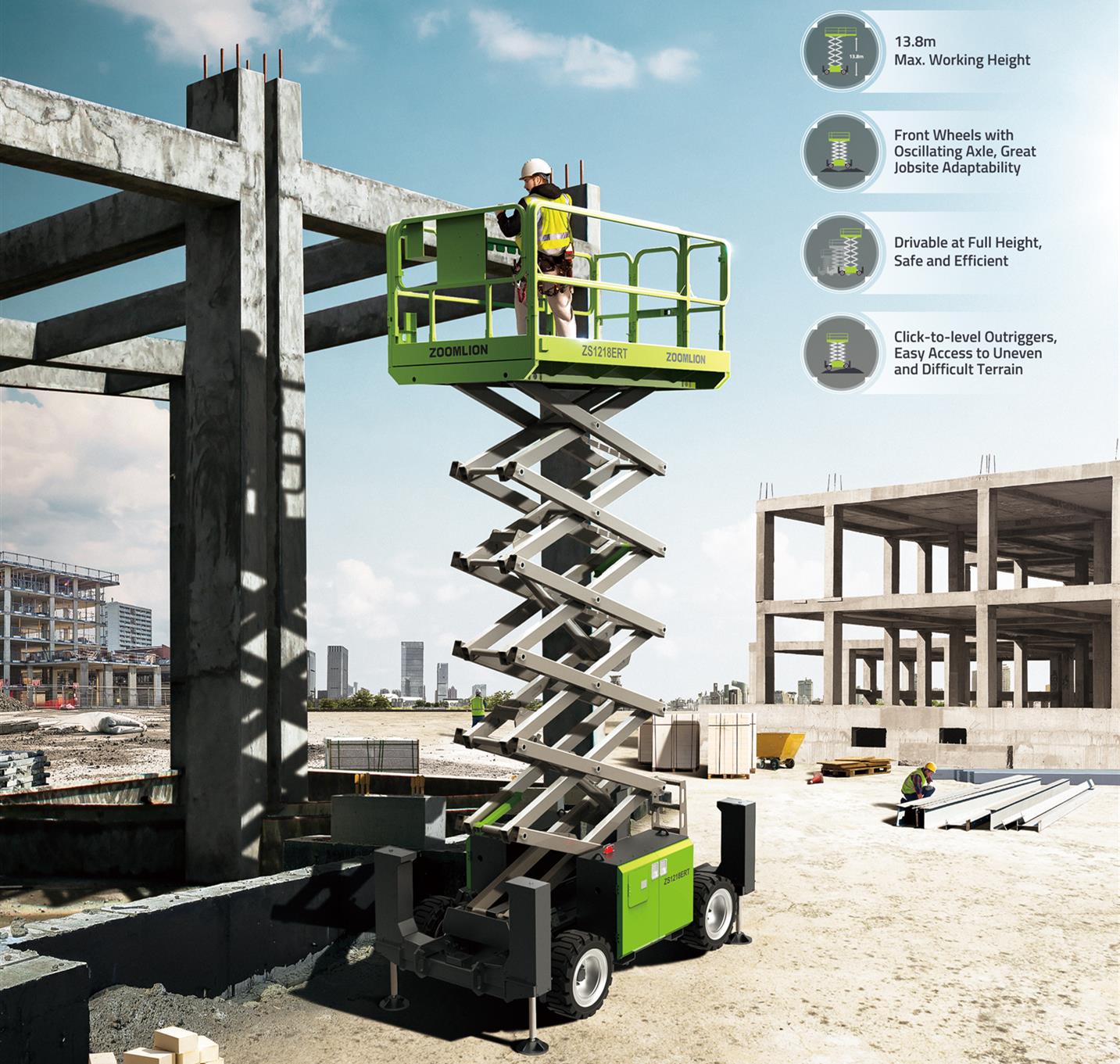 中联重科智能高机近年来高速发展,已位列英国KHL 2023年全球高空作业机械企业排行榜**7位,此次15款高空作业平台将集中亮相,其中电动化产品达到14款,以新品ZS1218ERT越野剪叉式高空作业平台为例,它采用模块化,轻量化,通用化,智能化等现代化设计手段,具有越野性能优越,工地适应强,维护方便快捷等特点,搭配基于物联网的租赁运营+设备监控一体化管理平台 宅男影院,让机队运营管理简单高效, 。