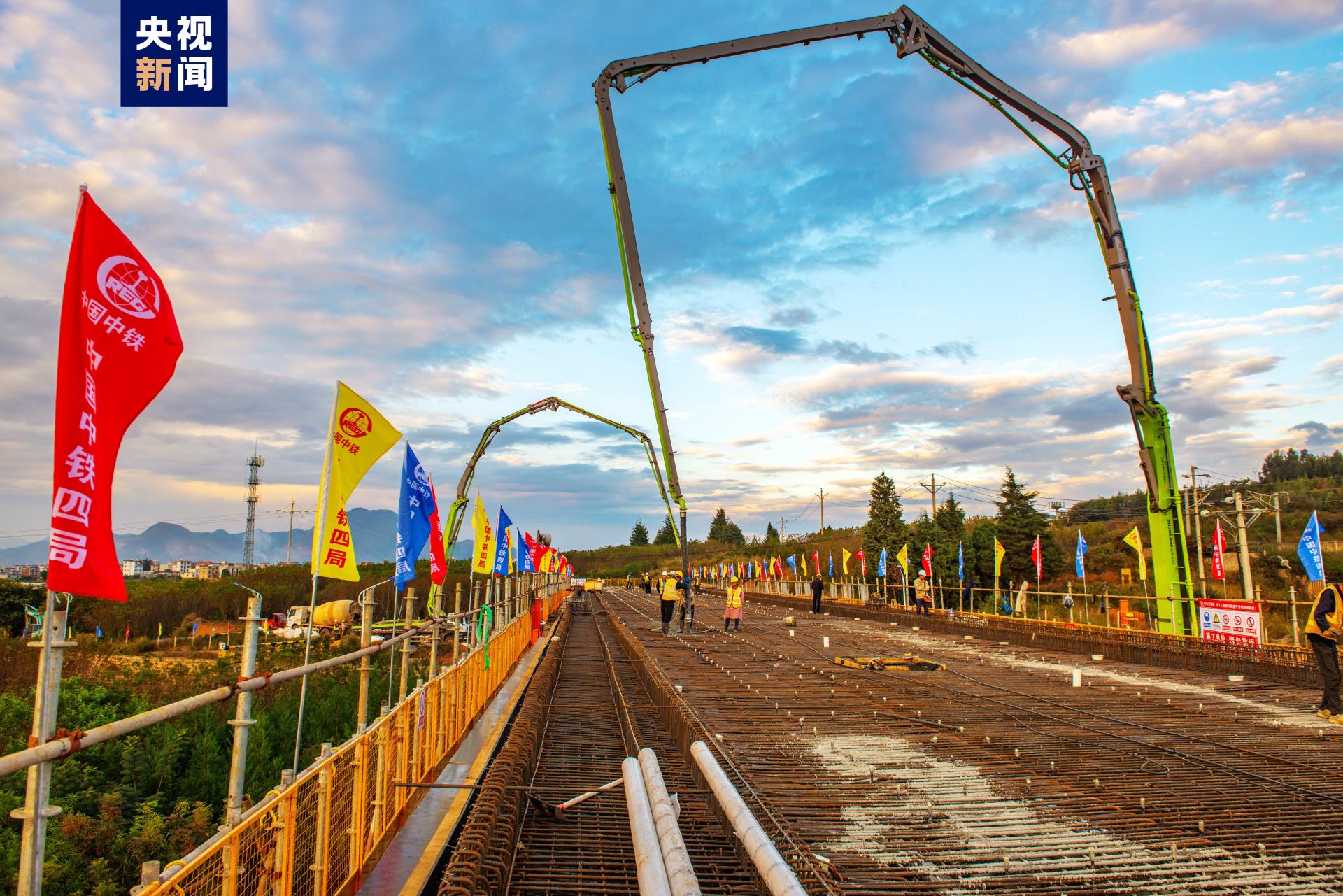 10月25日,央视《新闻联播》报道,渝昆高铁云南段首座大桥连续梁完成混凝土浇筑施工,标志着渝昆高铁云南段桥梁建设由下部工程向上部工程迈进,报道显示,助力渝昆高铁建设取得新突破的设备,正是数台身着极光绿的中联重科混凝土泵车 宅男视频, 。